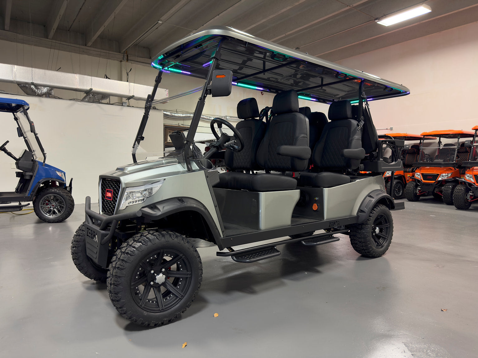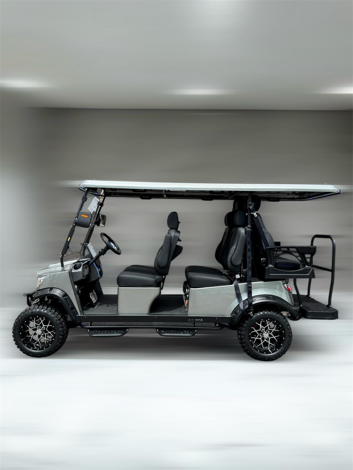 The 6-Seater Grey golf cart from Zebra Golf Cart is a refined blend of style, performance, and reliability. Perfect for both leisurely drives and practical transportation, this luxury model is built to elevate your experience whether you're cruising through the fairways of Plantation or exploring the sunlit streets of Miami and beyond.